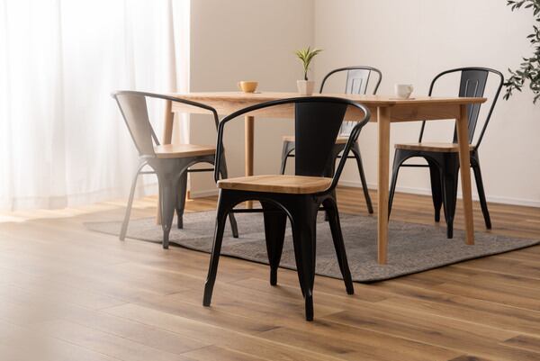 MITASインテリアのアームチェアダイニングチェアは、そのシンプルでスタイリッシュなデザインが魅力的です。ブラックのカラーリングがどんなインテリアにも馴染み、モダンな印象を与えます。アームレストが備わっており、リラックスした姿勢で食事や会話を楽しむことができます。