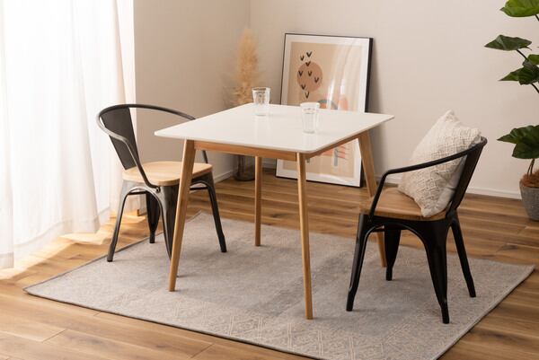 このアームチェアは、座面が十分に広く設計されており、快適な座り心地を実現しています。また、合成皮革を使用しているため、丈夫でお手入れも簡単。食事中の汚れもサッと拭き取ることができるため、忙しい日常にもぴったりです。