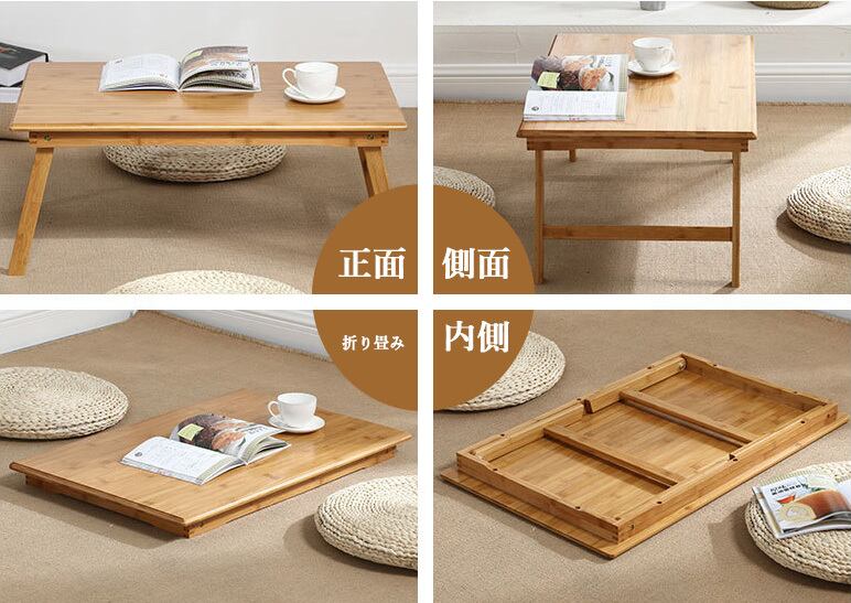 折り畳みテーブル 木製テーブル バンブー ローテーブル ナチュラル キャンプ PC 木製トレイ 小型 ミニ