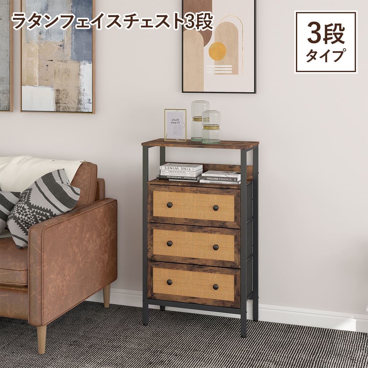 2色の髪をラタン風に編み込んだ引き出しの全面板とアンティーク調のプリント組み合わせがアジアンテイスと溢れる製品となっております。