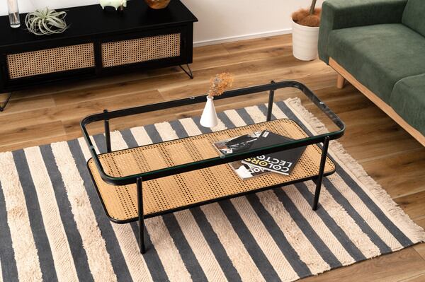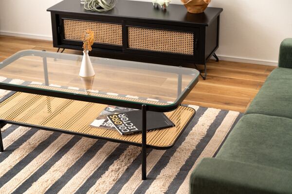 このリビングテーブルの優れたポイントは、多機能な使用法です。コーヒーテーブルとして使うのはもちろん、趣味の作業や仕事スペースとしても大活躍!サイドに雑誌やリモコンを置けるスペースもあるため、整理整頓もしやすいデザインです。