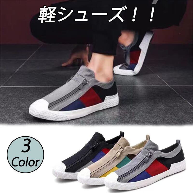 2021新作 メンズ スニーカー スポーツ カジュアル シューズ 靴 軽量 通気性 ファスナー スリッポン