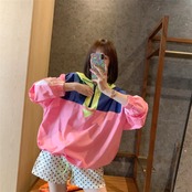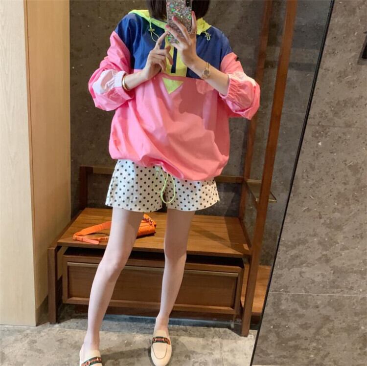 活気少女 INSスタイル 縫付 コントラストゆったりするフード付き カジュアル スポーツ 日焼け止め コート