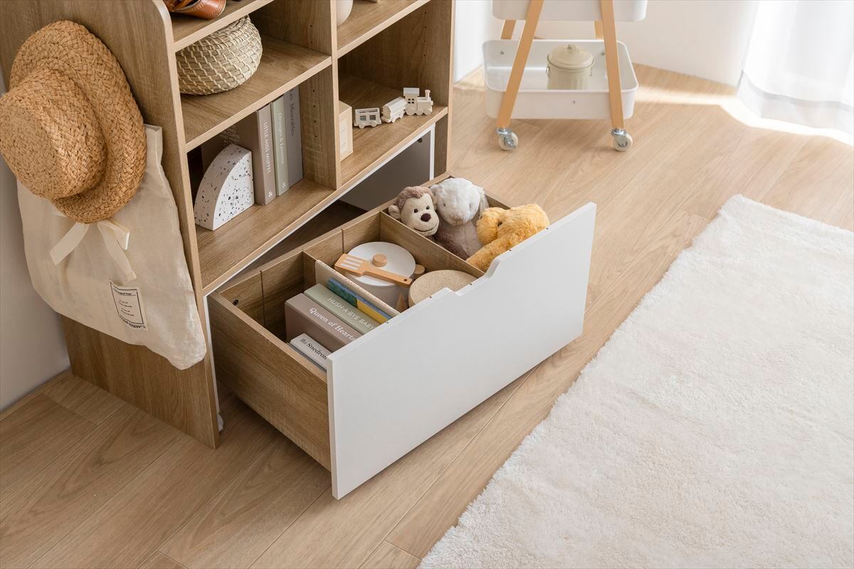 お子様のおもちゃなどをまとめて収納可能な『Pila』シリーズのマルチ収納・デスク付きランドセルラック