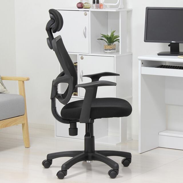 背もたれが高く、通気性の良いメッシュ素材のシンプルなチェアーです。
